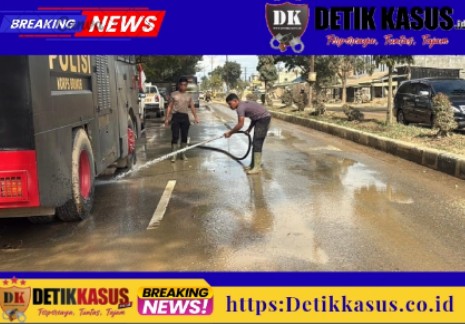 Menyikapi kondisi tersebut, Polri melaksanakan pembersihan serta penyiraman jalan protokol di Kabupaten Aceh Tamiang, Kamis (25/12/2025).