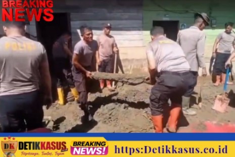 http://Detikkasus.co.id ][ Gayo Lues ][ Personel Polres Gayo Lues bersama Polsek Rikit Gaib dan Brimob Polda Aceh turun langsung membantu warga terdampak banjir bandang di Desa Cane Toa, Rabu (24/12/2025). Kegiatan difokuskan pada pembersihan lumpur tebal dan material kayu yang menggenangi rumah serta lingkungan permukiman warga.