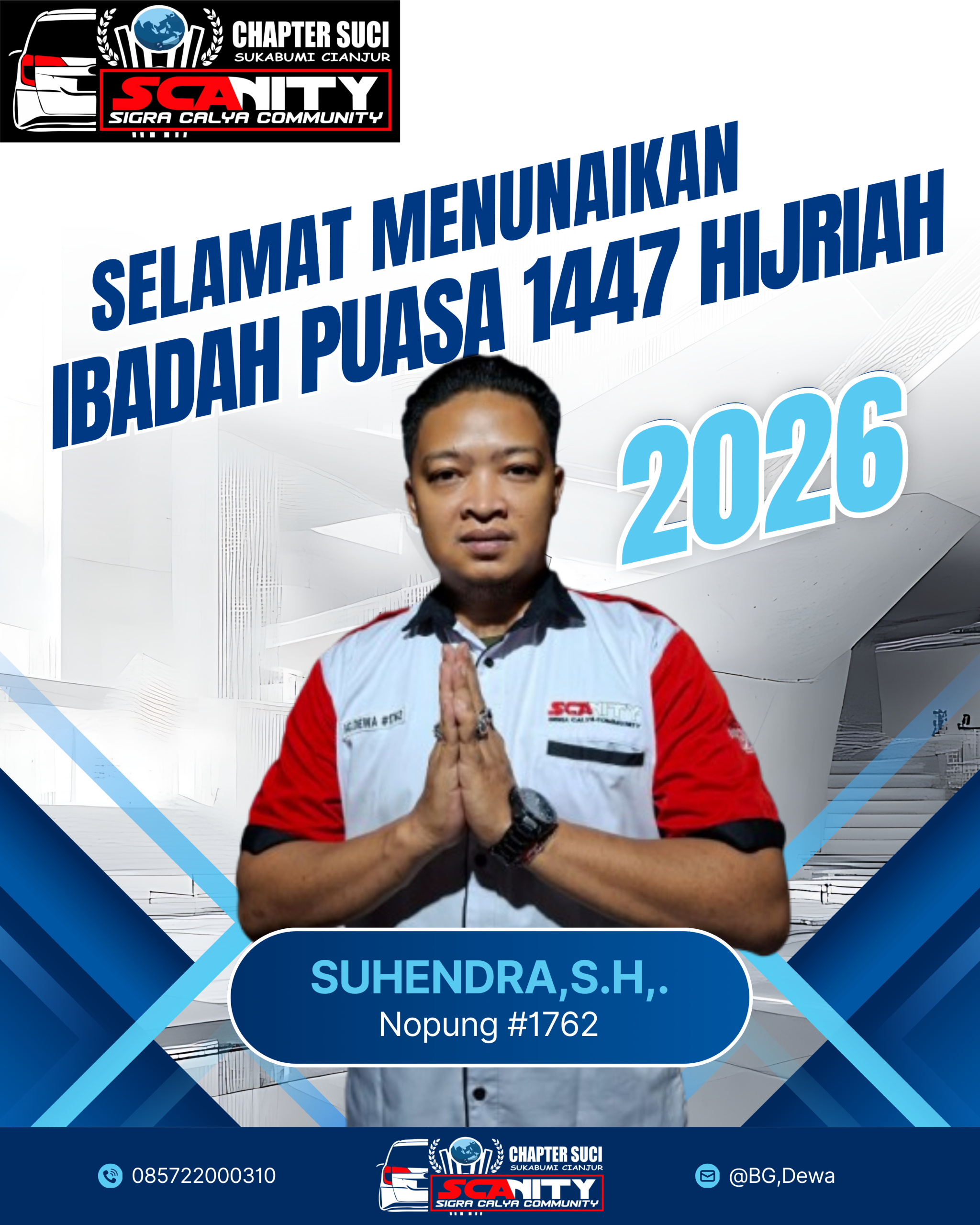Suhendra,S.H,. Member  (SCANITY) Chapter Suci Beserta Member Sampaikan Ucapan Selamat Menunaikan Ibadah Puasa Ramadhan 1447 H Penuh Doa dan Harapan